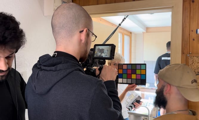 Mit einer sechsköpfigen Dreh-Crew, vier professionellen Hauptprotagonisten, 26 Statist:innen und der Verpflegung des Catering-Duos haben wir über 15 Stunden Drehmaterial gesammelt.