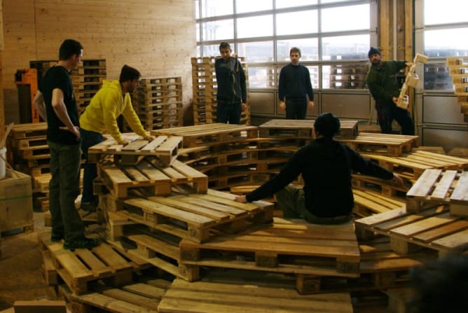 Im antiken Griechenland wurden Zentren, Treffpunkte und Versammlungsorte als «Agora» bezeichnet. An den Stanser Musiktagen 2013, vom 08. bis zum 14. April 2013, bauen wir solche kreisrunden Hofräume aus insgesamt 900 Holzpaletten. Wir schaffen damit Orte, die nicht direkt von den SMT bespielt werden, sondern eine Ergänzung zum Angebot darstellen und von den Gästen frei genutzt werden können.