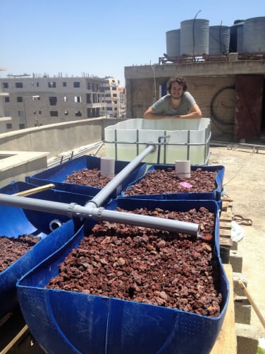 At the Palestinian Museum of Natural History (palestinenature.org) where we built the aquaponic systems we welcomed visitors almost daily. That’s how we wanted to present the idea of combining fish farming and vegetable cultivation. And it worked: several people from the region were interested in building a system themselves; for example George Handal from Bethlehem. Together we built an aquaponic system on his roof (see pictures). Part of the costs were paid with the remaining money from this Crowdfunding; but most of it George paid himself. I will continue supporting him with his project and hopefully start similar project in the region soon.