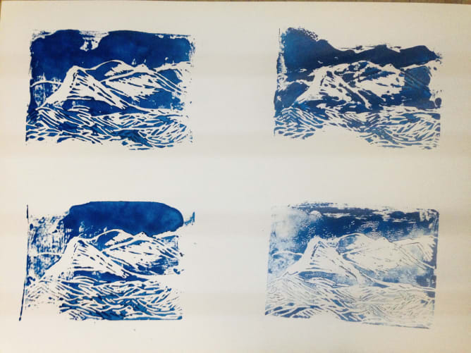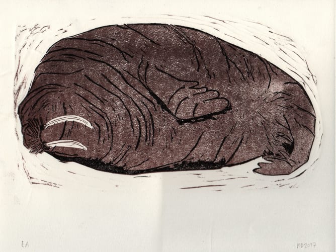 Ce sera en été 2019 ma deuxième participation à une résidence de MaréMotrice, et ma troisième visite de l’Arctique. Pour provoquer l’imprévu, je pars sans beaucoup de matériel spécifique pour travailler avec ce qu’il y a et ce qui arrive. Je dessine aussi pour documenter. S’imprégner de ces terres arides, des sons et des couleurs de la glace qui fond, du jour permanent et d’eau salée. Rendre le témoignage de ses rares habitant·es humain·es, des rennes, des morses, des baleines à bosses, des cochons sous-marins ou des crabes yeti. Je me forme d’abord comme décoratrice aux musées de Nyon puis travaille comme peintre et accessoiriste dans des théâtres. En 2003, j’entre à la HEAD ou je me forme en dessin, performance, film d’animation et vidéo. J’ouvre l’atelier cho! ucroute (dessins et film d’animation) à Nyon avant de partir en voyage à vélo juqu’en Mongolie et au Japon où je découvre la gravure sur bois traditionelle. A mon retour en 2012, je me forme à l’atelier de gravure Gegrave à Genève. Puis ouvre un an plus tard, avec le collectif Zone Hors Poussière, l’atelier du même nom, imprimerie artisanale et expérimentale à Agiez devenu depuis lors l’atelier des Mains sales à Orbe ou je pratique la gravure, la sérigarphie la typographie et le dessin.