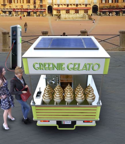 Une «ape» (=abeille en italien) au look rétro sympa, non polluante et qui se faufile dans les petites rues ou sur les quais …. pour vous proposer de succulentes glaces à l’italienne naturelles, avec des matières premières de qualité (des fruits bio de saison, des noisettes du Piemont, du lait bio directement du producteur local, etc.), peu de sucre et peu de graisse en comparaison avec les glaces industrielles.
