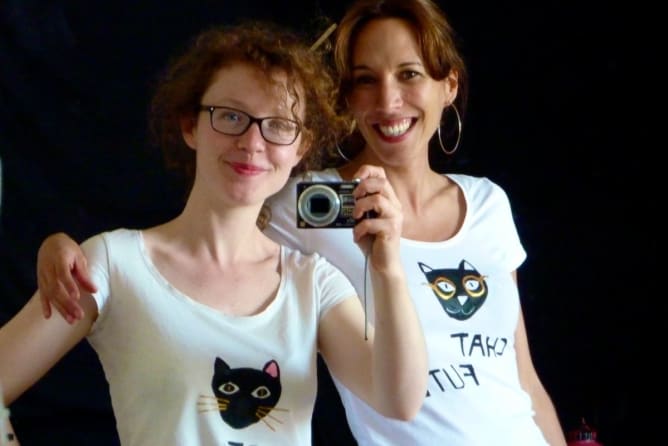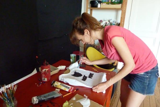 Laurence en train de finaliser le deuxième t-shirt Chat Futé.