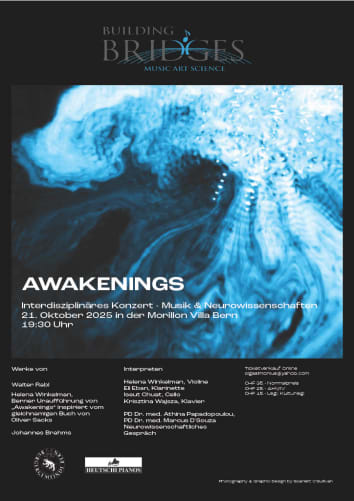 Seither konnten wir eine Reihe spannender Veranstaltungen realisieren, die den Brückenschlag zwischen Musik und Neurowissenschaft lebendig werden liessen. Eine Übersicht über alle bisherigen Konzerte wird demnächst auf unserer Website veröffentlicht: 👉 www.building-bridges-with-music.com (in Bearbeitung)