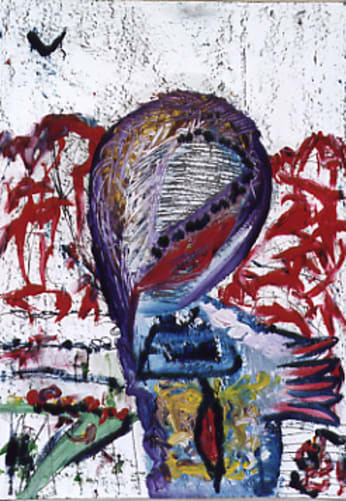 » Das Schädelgrab des Thomas Pain « Triptyhon in vier Teilen 1993/2014. (Öl und Mischtechnik auf Kunstschädel, Rigips, Holz, Leinwand) In Zusammenarbeit mit Schädelwaldt. Der Künstler Schädelwaldt schenkte mir einen seiner Schädelabgüsse, sein Tragendes Element innerhalb seines Werkes (Stilprägend) mit der Auflage dies zu benennen.
