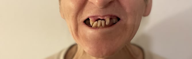 Nach Entfernung eines bösartigen Tumors, nehme ich seit 2018 nur noch püriertes Essen und Trinknahrung zu mir. Um zu mehr Gewicht und Lebensqualität zu finden, bedarf es einer Zahnprothese.