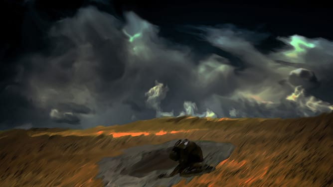 Denn wende ich meinen Blick ab, finde ich mich in einem trostlosen Ödland wieder. Schreckliches haben wir vollbracht. Getrieben von blinder Wut und Hass, fielen wir übereinander her, erbarmungslos wurde getötet und unsere Zivilisation zerstört.