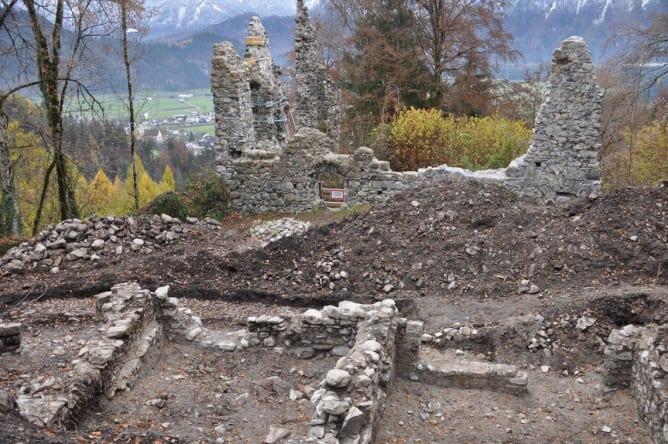 Wie ihr vielleicht schon durch einen Artikel der Vorarlberger Nachrichten wisst: Archäologische Untersuchungen haben am Areal der Burgruine Blumenegg sensationelle Funde zu Tage gebracht! Rund 20 cm unter der Erde verbergen sich ein Pflasterweg sowie Mauerreste.