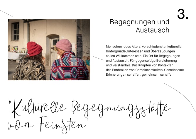 Kunst, Konzerte, Kulinarik, Workshops, Naturpflege, Austausch und Diskurs. Unsere Veranstaltungen sind bunt, eine Einladung an alle Generationen. Interkulturelle Vielfalt — so wird der Bergfried wieder zu einem Ort der Begegnung.