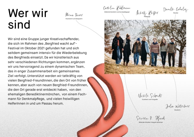 Mit den einfachsten Mitteln und quasi aus dem Nichts, haben wir mit viel Tatkraft, Motivation und Visionen den Bergfried wieder zum Leben erweckt. Drei erfolgreiche Veranstaltungen, Sommerateliers und vor allem wieder ein Ort an dem Erinnerungen geschaffen werden, eine Gemeinschaft entsteht und Ideen entwickelt und umgesetzt werden.
