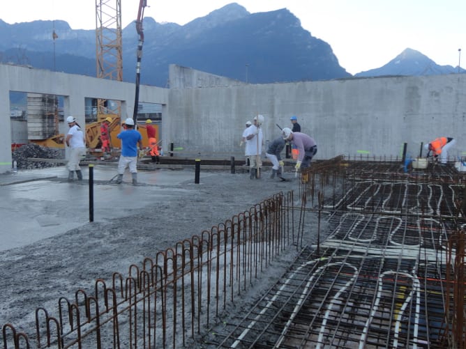 Währenddessen laufen die Bauarbeiten an der neuen Radsporthalle auf Hochtouren. Nachfolgend ein paar Impressionen des Hallenbaus.
