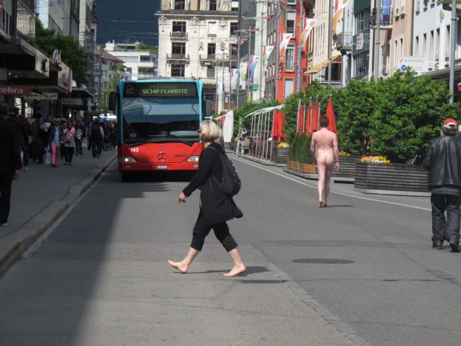 Noch vor einem Jahr wurde ein Stadtspaziergang mit Nacktakzenten (siehe Video oben und Bilder unten) nur teilweise bewilligt und die Durchführung des nichtbewilligten Teils mit einer Busse geahndet.