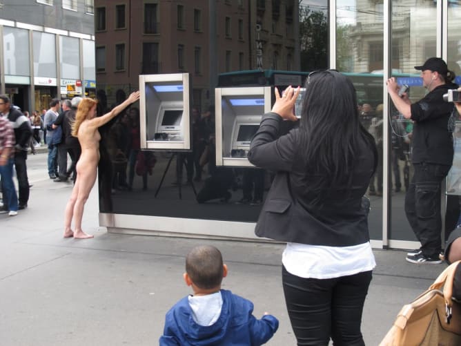 Auf Theaterbühnen, in Kunsthäusern und Galerien ist der nackte Körper gang und gäbe, im Stadtraum kommt er nicht oder nur selten vor. Andrerseits sind Kunst und Performances im öffentlichen Raum heute als irritierende Anreger willkommen und gern gesehen. Es darf im Stadtraum alles gezeigt und performt werden, was auch im Kunstraum und im Theater stattfindet, nur der nackte Körper scheint hier ein Tabu zu sein.