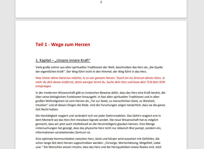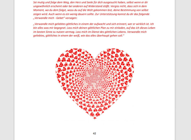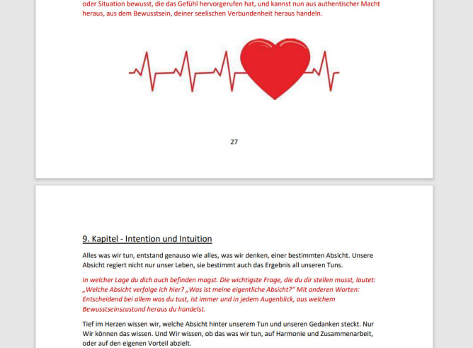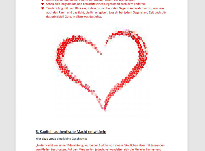 Dieses Buch soll allen Menschen helfen auf ihr Herz zu hören, die richtigen Entscheidungen im Leben zu treffen und somit im Einklang mit dem Universum zu sein. Es besteht aus 3 großen Teilen, die insgesamt 16 Kapitel enthalten. Zu jedem Kapitel gibt es eine praktische Übung, auch «Kontemplation» genannt, die dabei hilft, in die richtige Herzresonanz zu kommen.