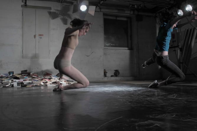 «Buchkörper» ist die zweite abendfüllende Tanzperformance, die die junge Choreografin Zina Vaessen für die Kompanie Offspace entwickelt hat. Die Performance verhandelt unser Verhältnis zu Büchern und untersucht körperliche Aspekte von Bibliotheksräumen. Auf der Suche nach verlässlichen Ordnungssystemen begeben sich die Tänzerinnen Mathilde Bonte und Lisa Klingelhöfer «unter Bücher».