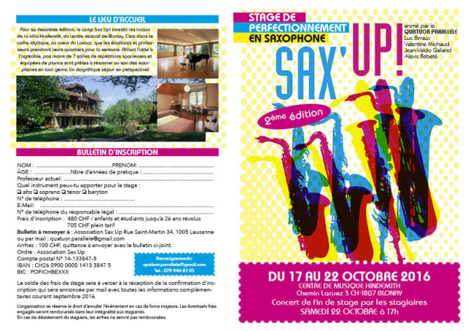 Sax Up, c’est tout d’abord une association fondée par le Quatuor Parallèle, quatuor de jeunes saxophonistes lausannois (nous!), tous concertistes et professeurs diplômés de la Haute Ecole de Musique de Lausanne.