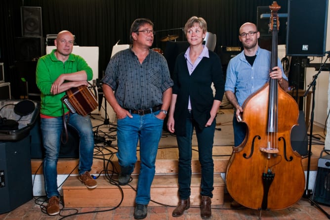 CD-Release-Tour Thomas Aeschbacher feat. Balthasar Streiff (Hörner, Erzähler), Jörg Nietlispach (Kontrabass, Pflanzplätz), Andy Gabriel (Geige), David Märki (Hackbrett), Simon Dettwiler (Örgeli, Pflanzplätz).