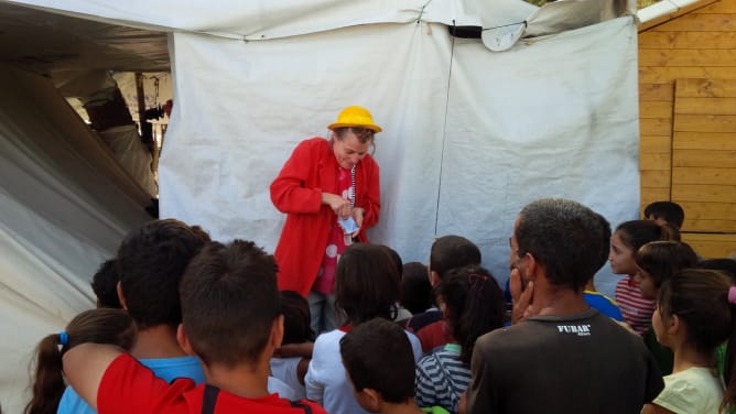 Ende März wollen wir in Lesbos die Flüchtlingscamps besuchen, und für die Kinder spielen.