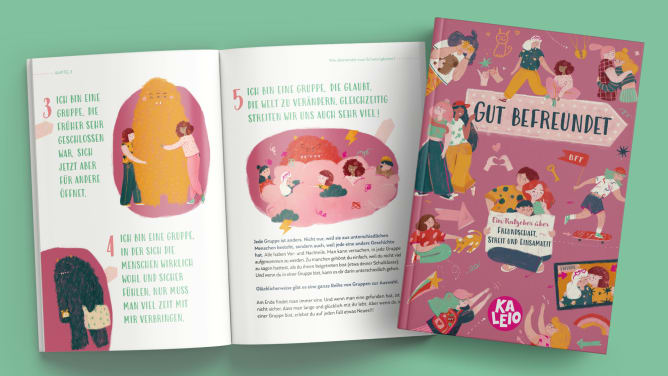 Im März möchten wir unseren ersten KALEIO-Ratgeber veröffentlichen: «Gut befreundet». Das Buch unterstützt Mädchen dabei, mit Freundschaft, Streit und Einsamkeit umzugehen, verletzende Beziehungen zu erkennen und sich vom Druck zu lösen, «die eine beste Freundin» haben zu müssen.