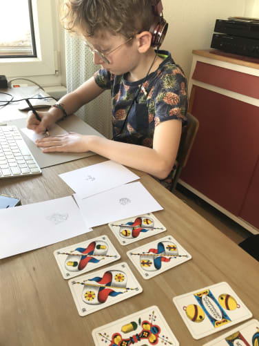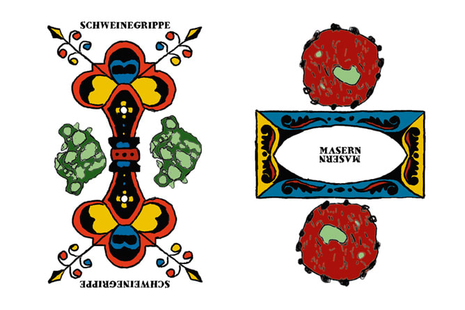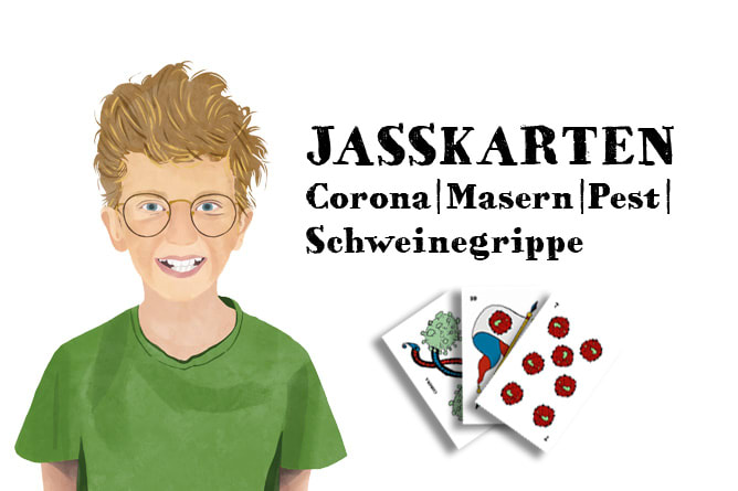 Wir hatten während der Homeschooling-Zeit in der Schule unter anderem die Aufgabe etwas Gestalterisches zu machen. Da ich die Form von Krankheitserregern unter dem Mikroskop faszinierend fand, wollte ich etwas mit diesen machen. So entstand die Idee des Corona-Jasskartensets.