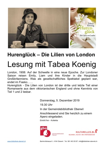 Was ich in dieser Zeit aber regelmäßig aktualisiert habe, ist meine Website www.autorin-tabea-koenig.ch Dort erfahrt ihr unter «Neuigkeiten» nicht nur, was mich die letzten Wochen beschäftigt hat, sondern auch, dass ich morgen an die Frankfurter Buchmesse gehe und dass am 30. Oktober um 20 Uhr eine Lesung in Muttenz am Brühlweg 3 stattfindet. Schaut doch mal vorbei, das würde mich sehr freuen!