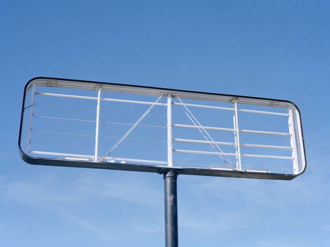 The project «Die Schwebende Rahmung» («The floating frame») was created while traveling through america. It is about a collection of empty advertising signs, which had been out of order for a while. The book will be published as a linen hardbook (24x30, 96 pages).