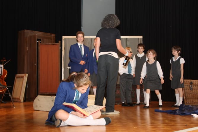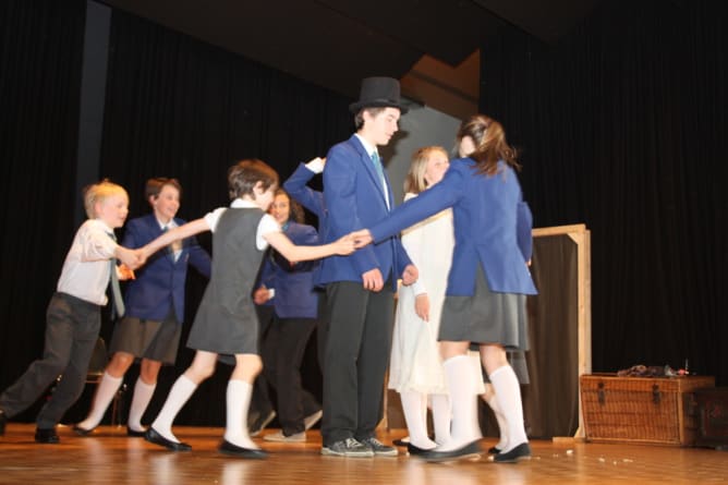 Auf dem Dachboden eines Internats, wo Marionetten einer früheren Zauberflötenvorstellung aufbewahrt werden. Dort langweilen sie sich und möchten die Oper gerne wieder aufführen. Sie werden von SchülerInnen entdeckt, die mit ihnen spielen. Der verstaubte Raum füllt sich mit Musik und Fantasie. Bis die Inspektorin beschliesst, er müsse komplett gereinigt werden. Damit wird die verträumte, farbige Welt zerstört.