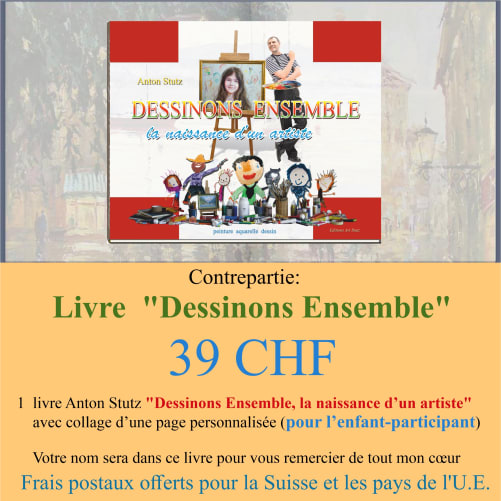 Je m’appelle Anton Stutz, je suis artiste peintre et créateur de ce projet - l’édition d’un livre d’art «Dessinons ensemble, la naissance d’un artiste». En tant qu’artiste, je vais publier un album d’art, qui montrera mon évolution artistique, en commençant par mes œuvres d’enfance. C’est un projet interactif - tous les enfants de 2 à 16 ans sont invités à participer au projet avec leurs dessins.