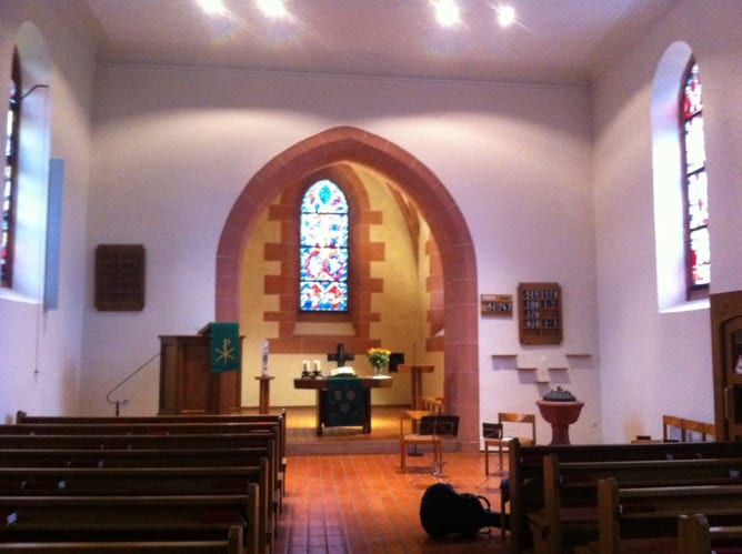 And here it is! The Sand Church, which is to say the church in Sand. It was a little thrill to see a few couples enjoying some romantic Valentine’s Day guitar music in the audience, and a huge thrill to play to such a packed venue! And yes, the first priest in Sand established a church in 1309… though it’s hard to read on the poorly-lit photo. We don’t know if he’d have anticipated De Falla and Houghton being played there, 706 years down the line. We’re half-way to our campaign goal, and looking forward to the next shows!