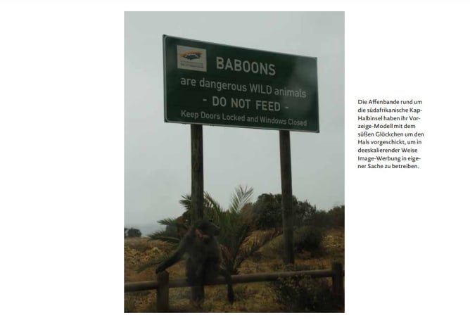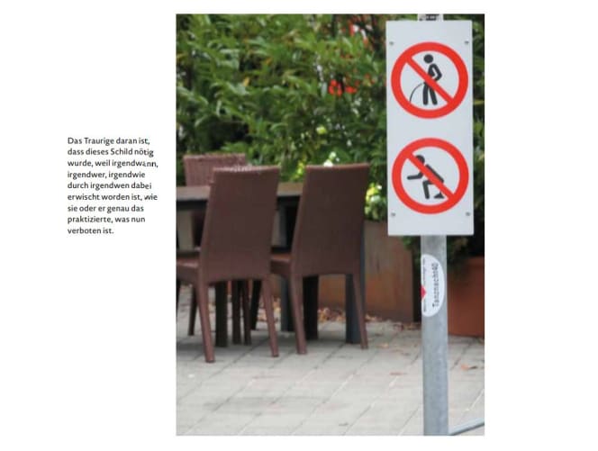 Mein Interesse an speziellen, eigenartigen, seltenen, schrägen sowie witzigen Schildern war fortan nachhaltig geweckt und ich sollte auf meinen vielen Exkursionen durch deutschsprachige Gefilde und meinen Reisen in fast 70 Länder noch oft die Möglichkeit erhalten, an ganz rare Exemplare zu gelangen, die Otto Normalverbraucher nie zu Gesicht bekommen würden. Die besten 246 Stück aus insgesamt rund 136’500 durchkämmten Reise- und Ausflugsfotos haben nun den Weg in dieses kleine, schmucke Buch gefunden.