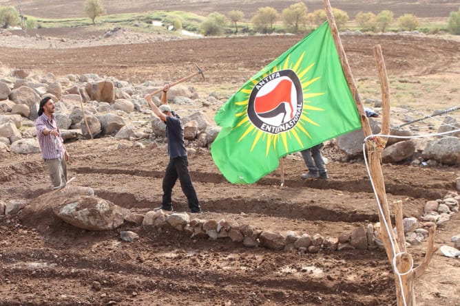 Geschichte Die Wurzeln der Revolution von Rojava stecken in der Erde der kurdischen Geschichte. Eine Geschichte, die von Verfolgung, Verleugnung und Massakern gezeichnet ist, und gleichzeitig eine Geschichte des Zusammenhaltens, des Widerstandes und des Kämpfens für eine befreite Gesellschaft ist. 1978 wurde die PKK (die kurdische Arbeiter_innenpartei) gegründet. Organisiert als sozialistische nationale Befreiungsbewegung begann 1984 der bewaffnete Guerillkampf gegen die koloniale Unterdrückung und für die Befreiung Kurdistans. Zuerst für einen unabhängigen kurdischen Staat kämpfend, änderte die PKK ihr Paradigma und erklärte 2004 die Neuausrichtung: der demokratische Konföderalismus. Aufbauend auf den Schriften von PKK-Vorsitzendem Abdullah Öcalan erkannte die kurdische Bewegung, dass ein Staat immer ein Instrument der Unterdrückung ist, und so wäre auch ein kurdischer Staat eine autoritäre Struktur. Obwohl Abdullah Öcalan 1999 durch ein internationales Komplott verhaftet wurde, und seither auf der Insel Imrali in der Türkei in Isolationshaft gehalten wird, kamen seine Verteidigungsschriften, auf denen eben diese Neuausrichtung des demokratischen Konföderalismus basiert, zwischen den Gitterstäben durch. Frauen waren seit der Gründung der PKK beteiligt und bauen seit Jahrzehnten eigene Strukturen auf. Die Frauenbefreiung gilt in der Bewegung als eines der obersten Ziele einer befreiten Gesellschaft. Das Modell des demokratischen Konföderalismus zielt nicht darauf, die Staatsmacht zu übernehmen, sondern durch den Aufbau von alternativen Strukturen die Gesellschaft zu organisieren, und den Staat überflüssig zu machen und abzuschaffen. Das Rojava Modell 2014 wurde in Rojava die demokratische Autonomie ausgerufen, und die Menschen begannen mit der Idee des Demokratischen Konföderalismus eine radikal basisdemokratische Gesellschaft aufzubauen. In der praktischen Umsetzung heisst das, dass jeder Strassenzug oder jedes Dorf sich selbst als Kommune organisiert. Da werden Entscheidungen getroffen und Komissionen gewählt, die Arbeiten erledigen, die die Kommune betreffen. Die Kommunen schicken Vertreter_innen in den Stadtteilrat, von da aus wird der Bezirksrat gebildet und von dem aus wiederum bildet sich der Volksrat. So wird die Gesellschaft von unten nach oben organisiert. Die Räte werden nicht proportional besetzt, sondern es wird sichergestellt, dass alle Ethnien und Religionen repräsentiert und an den Entscheidungen beteiligt sind, also Assyrer, Araberinnen, Kurden … Überall gibt es eine Frauenquote von 40 Prozent, und jeder Vorsitz wird von zwei Personen, einer Frau und einem Mann co-geführt. Darüber hinaus haben Frauen ihre eigenen Strukturen und Verteidigungseinheiten, damit sichergestellt wird, dass sie nicht übergangen werden können. In Rojava wurden unzählige Kooperativen gegründet, mit denen die Wirtschaft auf eine solidarische Basis gestellt wird, die nicht dazu dient, die Menschen auszubeuten, sondern sie zu versorgen. Warum interessieren wir uns für Rojava? Die Revolution in Rojava und der Demokratische Konföderalismus haben eine grosse Anziehungskraft in der Region, weil sich viele Menschen, die ein Leben in Krieg und Unterdrückung leben, danach sehnen, eine alternative und friedliche Gesellschaft aufzubauen. Besonders für Frauen, die durch das Patriarchat doppelt unterdrückt sind, ist die Revolution in Rojava sehr wichtig. Rojava und der Demokratische Könfederalismus haben über die Region hinaus eine grosse Anziehungskraft. Auch in Europa sehnen sich viele Menschen nach einer freien und gerechten, nach einer feministischen und ökologischen Gesellschaft. Immer mehr Menschen ist klar, dass das System, in dem wir leben, so ungerecht ist, und so viel Leid schafft, dass es nicht so weitergehen kann. Es braucht alternative Perspektiven. Der Demokratische Könfederalismus bietet einen Ansatzpunkt, wie so eine Gesellschaft konkret aufgebaut werden kann, ohne die Veränderung weiter in die Zukunft zu verschieben. Die Revolution in Rojava hat gezeigt, dass eine andere Welt nicht nur nötig, sondern auch möglich ist. Imperialismus und Internationalismus Genau deswegen, weil die Mächtigen wissen, welches Potential diese Revolution hat, bekämpfen sie diese. Insbesondere dem türkischen Staat, unter Erdogans AKP ist diese Revolution ein Dorn im Auge. Aber auch Europa beteiligt sich am Krieg. Die Schweiz liefert Waffen und viele Schweizer Firmen unterstützen die Türkei mit Geld und Investitionen, und profitieren vom Krieg. Die Selbstverteidigungseinheiten der YPJ und YPG stehen einem scheinbar übermächtigen Feind gegenüber. Aber der Kampf um Kobane, als die YPJ und YPG, teilweise unterstützt durch die USA mit Luftangriffen, den viel besser ausgerüsteten und zahlenmässig überlegenen IS geschlagen haben, hat gezeigt, dass eine Bewegung, die entschlossen für die Freiheit kämpft, nicht so leicht besiegt werden kann. Der türkische Staat versucht seit drei Jahrzehnten die kurdische Befreiungsbewegung zu vernichten. Ohne Erfolg, im Gegenteil …. Vor allem seit dem Kampf um Kobane 2014/2015 sind auch in Europa Menschen zu Hunderttausenden auf die Strasse gegangen, verantwortliche Strukturen wurden angegriffen, Solikomitees wurden gegründet. Es ist wichtig, dass sich die Menschen auf der Welt verbinden, um gemeinsam für eine bessere Zukunft zu kämpfen.