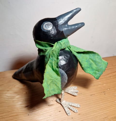 La famille corbeau cherche une famille d’accueil après l’exposition… Ils décoreront à merveille vos intérieurs, une chambre d’enfant, la vitrine d’un commerce. Ils sont fait en papier mâchés par un l’atelier de la FARA à Fribourg. Ils préfèrent rester au chaud à l’intérieur.