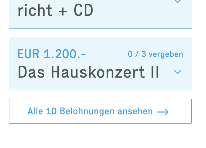 Weil wir schon drei Hauskonzerte vergeben haben und nicht wissen können, ob noch jemand eines haben wollte, haben wir jetzt noch drei weitere freigeschaltet.