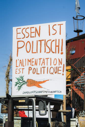 Le signal de départ sur la voie d’un nouveau système qui offre une perspective pour nous tou.te.s. Mais en plus, il offre une alternative pour les générations futures : Nous voulons passer d’une politique agricole unilatérale, pensée en silos, à une politique alimentaire globale. Pour nous, il est clair que l’agriculture ne peut pas être considérée séparément de la santé, de l’alimentation, du climat, de l’environnement, du commerce et de la politique étrangère, car une politique alimentaire holistique peut mieux répondre aux problèmes de santé, au changement climatique, aux inégalités sociales et à de nombreux autres défis.