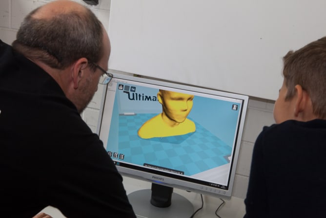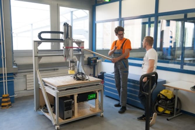 Bis jetzt ist alles im Plan und die Werkstatt hat noch ihren letzten Schliff erhalten: Die Maschinen sind betriebsbereit, die Vitrine blitzblank, Kabel verlegt, Computerprogramme installiert und die Leinwand gebastelt.