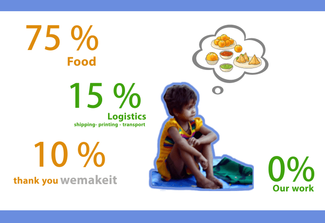 From the overall funds raised, 75% will be to support the families, 15% will be for the rewards and 10% to thank wemakeit platform.