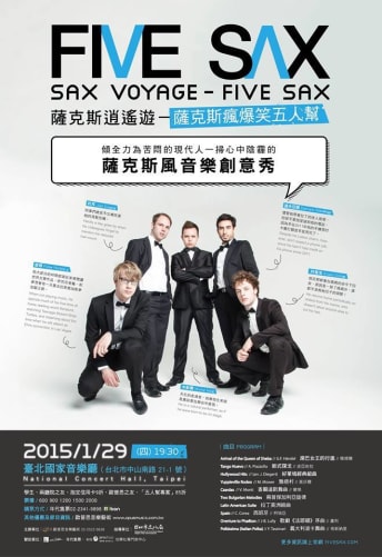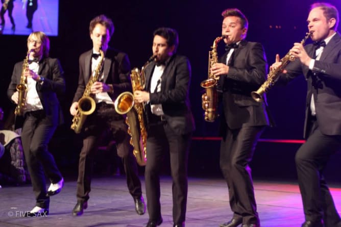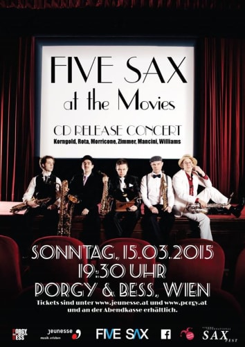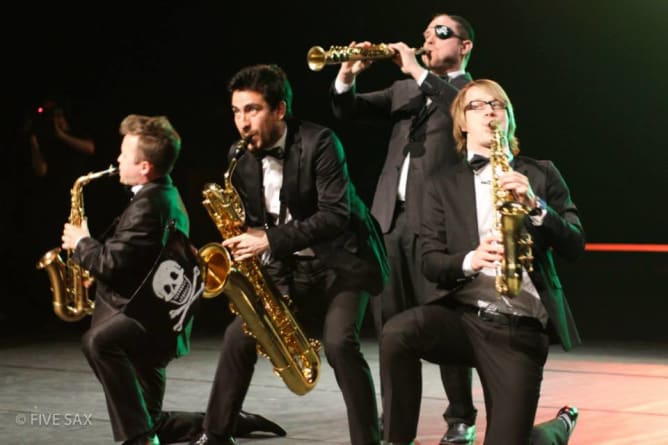 FIVE SAX invites you to join them on an unforgettable musical journey. The multi-continental trip begins in the legendary capital of music: Vienna, with a look back at some timeless classics of the past. Then we jump on a train to explore the rich ethnic musical styles of Spain, Italy, Hungary, Argentina, Brazil, the Balkans and Hollywood.