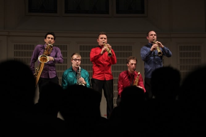 In 2012 we converged in Vienna from Italy, USA, Belgium, Poland and Chile. United by a modern conception of virtuosity and the incessant urge to push the limits of performance, we created FIVE SAX. The first step of our journey took us from the front door of conservatory, straight to the streets of Vienna.