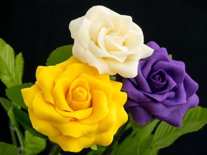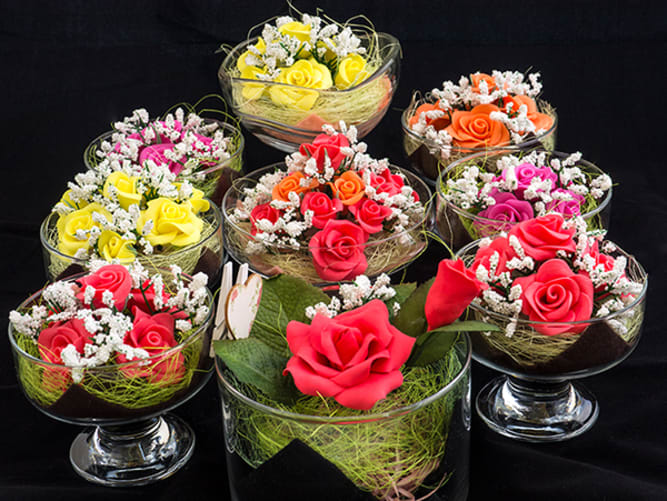 Bei der zweiten Art werden Blüten und Blätter aus Seife händisch modelliert und zu Blumen zusammengefügt.