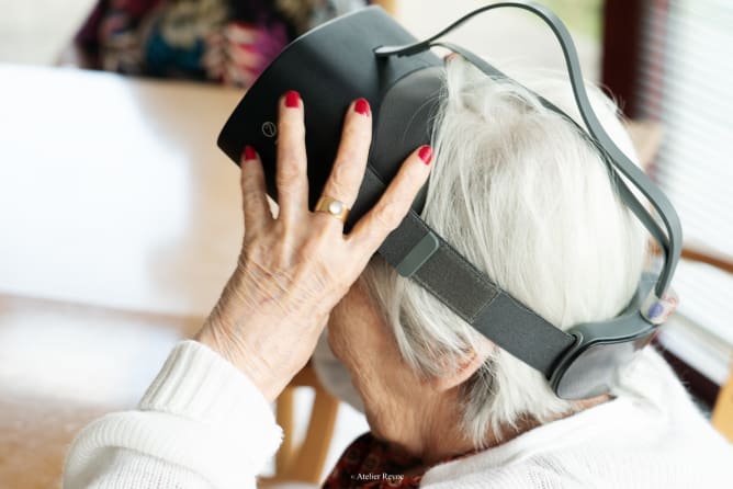 Lorsque les personnes dépendantes n’ont plus la possibilité de sortir d’une institution ou même de leur propre maison, nous leur offrons un voyage immersif au service du bien-être.