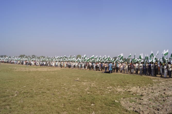 In Indien leben Millionen von Menschen auf dem Land. Viele von ihnen sind die Ureinwohner Indiens, die Adivasi (der erste Mensch) genannt werden. Sie bewirtschaften als Kleinbauern ihr Land seit Jahren, ohne ein verbrieftes Recht auf den Besitz des Landes zu haben. Oft kommt es vor, dass diese Menschen von ihrem Land vertrieben werden, weil Grosskonzerne Anspruch auf dieses Land erheben. Dies können die Konzerne, weil Behörden und Verwaltung korrupt sind. Die Ekta Parishad, unter der Leitung von P.V. Rajagopal, setzt sich seit Jahren für mehr Rechte und bessere Lebensbedingungen der Menschen auf dem Land ein. 2012 versuchte die Ekta Parishad die Regierung zur Unterzeichnung und Einhaltung eines 10 Punkteprogramms, welches den Landlosen mehr Rechte und Schutz vor staatlicher Willkür gibt, zu bewegen. Um die Forderungen zu untermauern organisierte die Ekta Parishad den Jan Satyagrha den grossen Marsch. 100’000 Landlose marschierten von Gwalior Richtung Delhi. Im Filmtrailer von «Millions can walk» sieht man die Bilder des Marsches. Das ist die Vorgeschichte zu meinem Workshop.