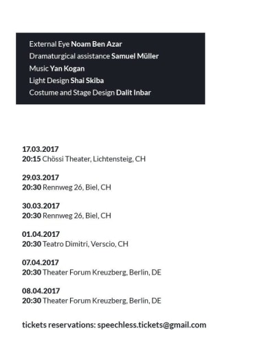 We are one month before the Swiss permiere and very close to the end of the rehearsal period in Tel-Aviv.
