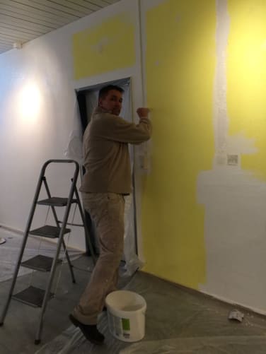 die uns bis jetzt unterstützt haben. 23 Unterstützer, über 3’700 Franken, noch 13 Tage. Wir sind mehrmals in der Woche im Atelier um zu Malen, Spots zu installieren und so weiter. Ich glaube ich habe mehr Farbe in den Haaren als an den Wänden, grins.