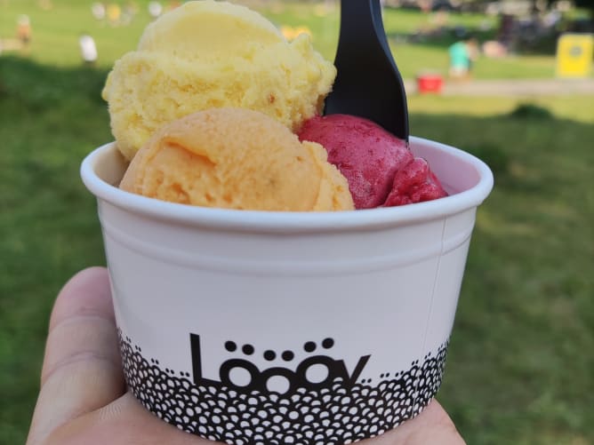 Wusstest du, dass mehr als ein Drittel aller Lebensmittel entlang der Wertschöpfungskette ungenutzt entsorgt wird?! Um diese Lücken zu schliessen, haben wir beschlossen, unsere eigene Glacé zu kreieren. Es muss nicht nur super schmecken, sondern auch Rohstoffe enthalten, die wir mit bestem Gewissen verwenden können. Deswegen orientiert sich unser Sortiment an dem, was verfügbar ist. Das sind regionale Lebensmittel oder Produkte, die es zu niemandem nach Hause geschafft haben. Von Hand produzieren wir aus dem, was es gerade gibt, ganz nach dem Motto: «S het solangs het». Dank unserer Zusammenarbeit mit der Wertstätte gemeinnützige GmbH können wir geretteten Lebensmitteln eine zweite Chance geben. Da wir nie wissen, was wir wann kriegen, entstehen auch mal ausgefallenere Kreationen.