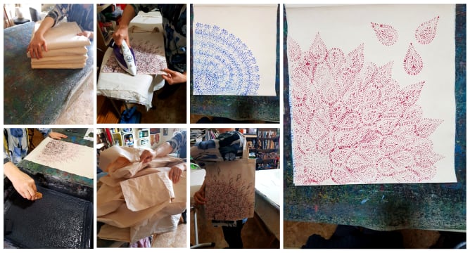 Zena along with six amazing women, are in the final steps of producing your tote bags. Every bag is individually hand made with much passion and talent. Zena was thrilled to tell me that she managed to get her hands on canvas made from Syrian cotton, which is very scarce these days. The production goes through four steps, all handmade from start to finish. They start by pre-washing the raw fabric with hot water to prevent shrinkage. Then they tailor-make each bag individually. Once the bag takes its final shape, the ladies design the bags individually with patterns printed by wooden blocks. Some of these blocks are over 1oo years old. The final step is ironing the bags to be ready to be shipped to your doorstep. Each bag will hold a handwritten thank you tag with the names of the women who made it. The names of these women are equally valuable as their work.
