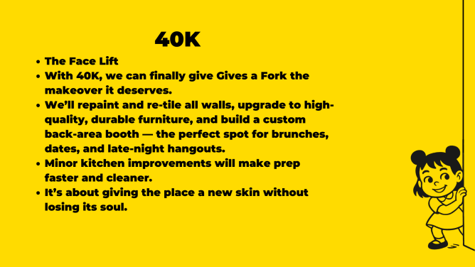 This project isn’t just about upgrading a restaurant — it’s about keeping independent creativity alive in a city where small businesses rarely get the chance to grow without investors or big capital.