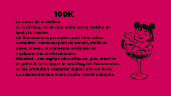 Every franc goes directly into this transformation — the version of Gives a Fork that’s bigger, bolder, and even more you.