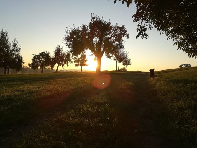 Die Sonne küsst den Morgentau, die Vögel drehen zwitschernd ihre Runden und in der frischen Luft liegt der Geruch vom saftigen Gras. Für uns ist genau das auf unserem Bio-Bauernhof Alltag. Fernab von Hektik und Verkehr zeigt sich hier, idyllisch zwischen Hügeln und Wiesen, die Natur von ihrer schönsten Seite. Simmentaler Mutterkühe, Engadiner Schafe, zwei Pferde, zwei Wollschweine, Hühner, Katzen leben hier und unser liebevoller Hofhund Cara ist das Herzstück unseres Bio-Hofes.