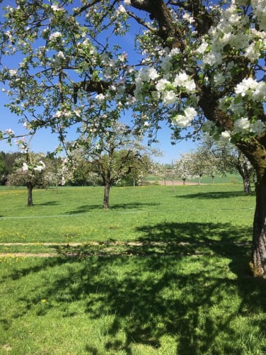 Wir wollen dir diesen Traum erfüllen! Zwischen unseren rund 100 Obstbäumen planen wir ein Glamping: Camping mit Stil und Komfort. Ein geräumiges und ausgebautes Safari-Zelt mit grossem Bett und gemütlicher Einrichtung lädt ein, unvergessliche Nächte in der Natur zu verbringen. Grüsse die Sonne am Morgen auf der Holzveranda oder beobachte den Sternenhimmel, bevor du dich schlafen legst. Werde tagsüber teil unseres Bio-Bauernhofes; Streicheleinheiten für Cara, Wanderungen über Wiesen und durch Wälder oder Eierholen bei unseren Hühnern.