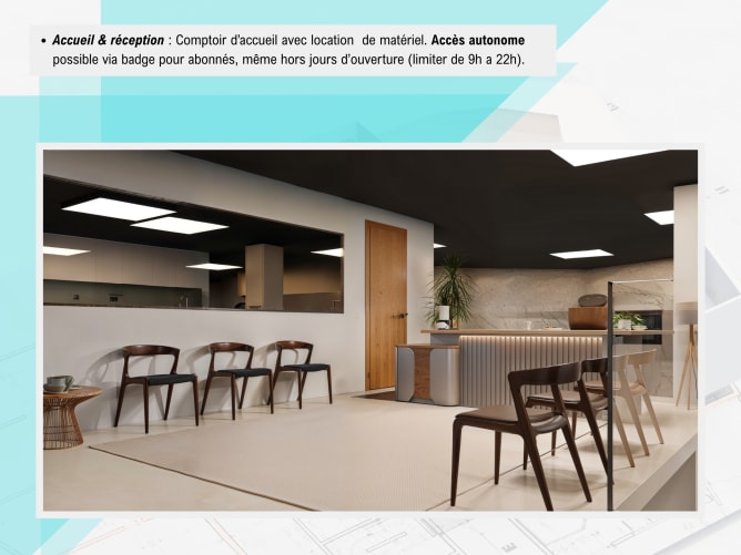 - Schreinerarbeiten (Bar, Empfang, Umkleiden, Kinderbereich),