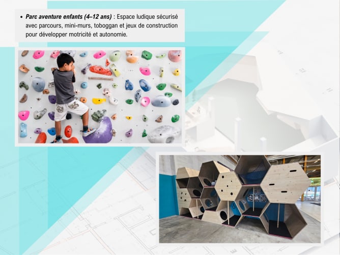 - Montage der Kletterwände und Sicherheitsmatten,